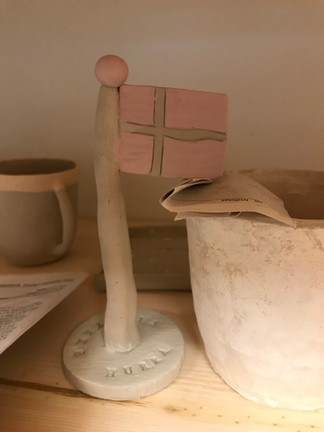 Hvordan kan vi så gå glasurbrændingen i møde, med det bedste udgangspunkt for at flagstangen arter sig, som vi gerne vil have? Formgivningen spiller som bekendt en væsentlig rolle, men også lertypen er afgørende. Her bør man med fordel vælge en lertype med højt indhold af chamotte, som er små stenkorn af brændt ler, som findes i flere af vores stentøjsler og har den egenskab, at det hjælper til stabilitet og styrke i leret, når der skulptureres. Chamotten bidrager også til, at leret i mindre grad krymper i tørrings- og brændingsprocessen og dermed mindskes risikoen for revner eller at leret slår sig – Det kan altså være afgørende for at opnå et prangende og stolt flag.